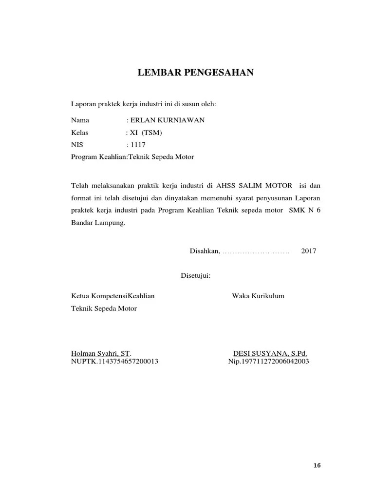 Prakerin Smk Contoh Lembar Pengesahan Laporan Pkl : Prakerin Smk Contoh Lembar Pengesahan Laporan Pkl Kumpulan Contoh Laporan - Contoh lembar pengesahan laporan prakerin pkl smk.. Prakerin ( praktek kerja industri ) merupakan kegiatan pendidikan yang wajib diikuti bagi siswa smk, pelatihan dan pembelajaran . Pedoman penyusunan laporan praktek kerja industri (prakerin) smk pembangunan dlingo. Jadi, jika anda membutuhkan atau ingin . Contoh penulisan halaman lembar pengesahan. Contoh lembar pengesahan laporan prakerin pkl smk.